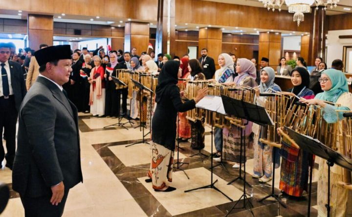 WARTANET NKRI – Gelaran penyambutan Presiden Republik Indonesia Prabowo Subianto di Islamabad, Pakistan, Senin, 8 Desember 2025, tidak hanya diwarnai seremoni kehormatan tinggi dari pemerintah Pakistan, tetapi juga antusiasme besar masyarakat Indonesia. Sejumlah WNI turut tampil membawakan lagu perjuangan dengan angklung untuk menyambut kedatangan Kepala Negara saat tiba di hotel tempatnya bermalam.